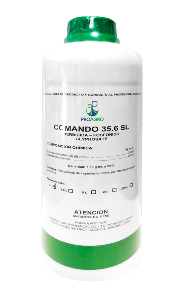 Home > Phytosanitary > Comando 35.6 SL Ficha Técnica Comando 35.6 SL Herbicida de amplio espectro, actúa rápidamente permitiendo que la siembra se pueda hacer más pronto, lo que facilita una óptima utilización de la tierra. Ingrediente Activo: Glifosato 36 SL Controla: Bermuda, zacate Johnson, zacate de agua, pata de gallina, zacate jaragua, caminadora, arroz…