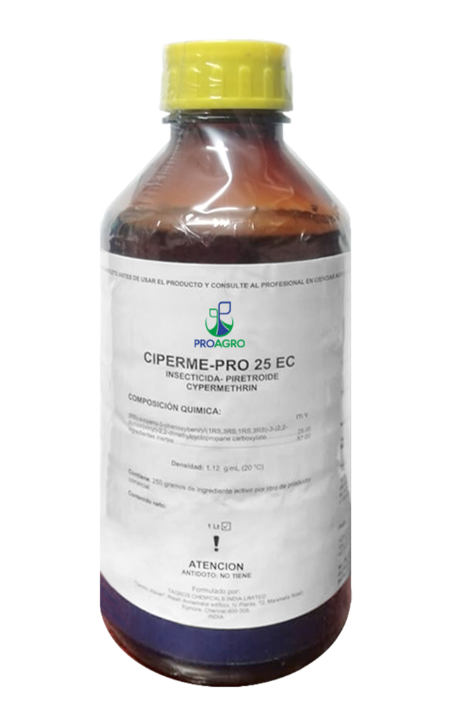 Home > > Ciperme Pro 25 EC Ficha Técnica Ciperme Pro 25 EC Es un insecticida piretroide de amplio espectro, muy activo que actúa por contacto e ingestión y se puede aplicar para todo tipo de cultivo. Ingrediente Activo: CIPERMETRINA. Controla: Moscas, garrapatas, termitas y Gusano cogollero. Usos MAÍZ SORGO PAPA ARROZ CITRICOS HORTALIZAS PASTOS…